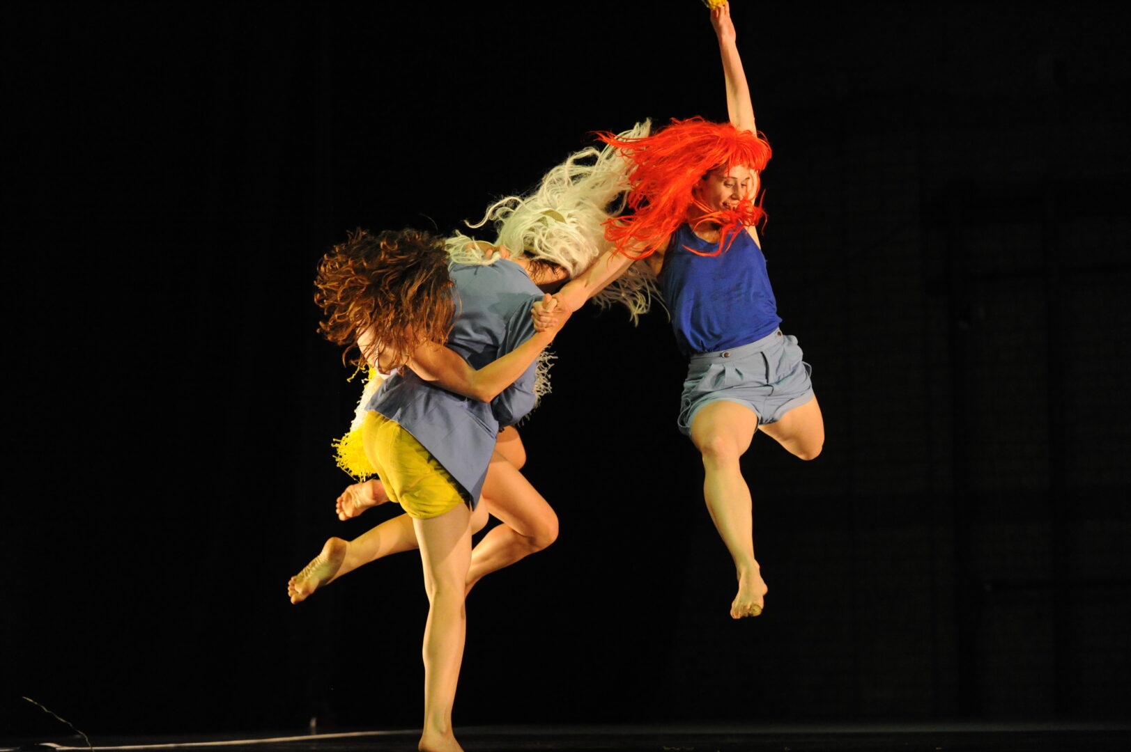 SEE HER CHANGE is a physical and mental journey performed by Godder alongside two of her longtime collaborators Dalia Chaimsky and Shuli Enosh. Juxtaposing private experience with stage persona, the performance prompts questions of age and ageing, social functions and gender representations. Multitude of self-mockery scenarios suggests diverse interpretations of the altered female character. Mixing, matching and overlaying body postures, sounds and movements, the performers are constantly de-contextualizing their roles and personalities. All three playfully expose a rare sense of vulnerability, while also seeking safe haven through means of disguise. A choreography of unexpected interactions and compositions manifests different notions of ‘femaleness’. From glamorous to pathetic, from dangerously stimulating acts to childlike manner, a multi-faceted portrait is brought to stage. Skillfully maneuvering from the distressed to the overwhelmed it stimulates new associations regarding performativity, memory, and humor. Candid yet fierce and vigorous the performance entangles the viewer into an uncanny state. By constructing a web of intense sensory stimulation, Godder and her collaborators entice us into facing innate inhibitions and primal perceptions.